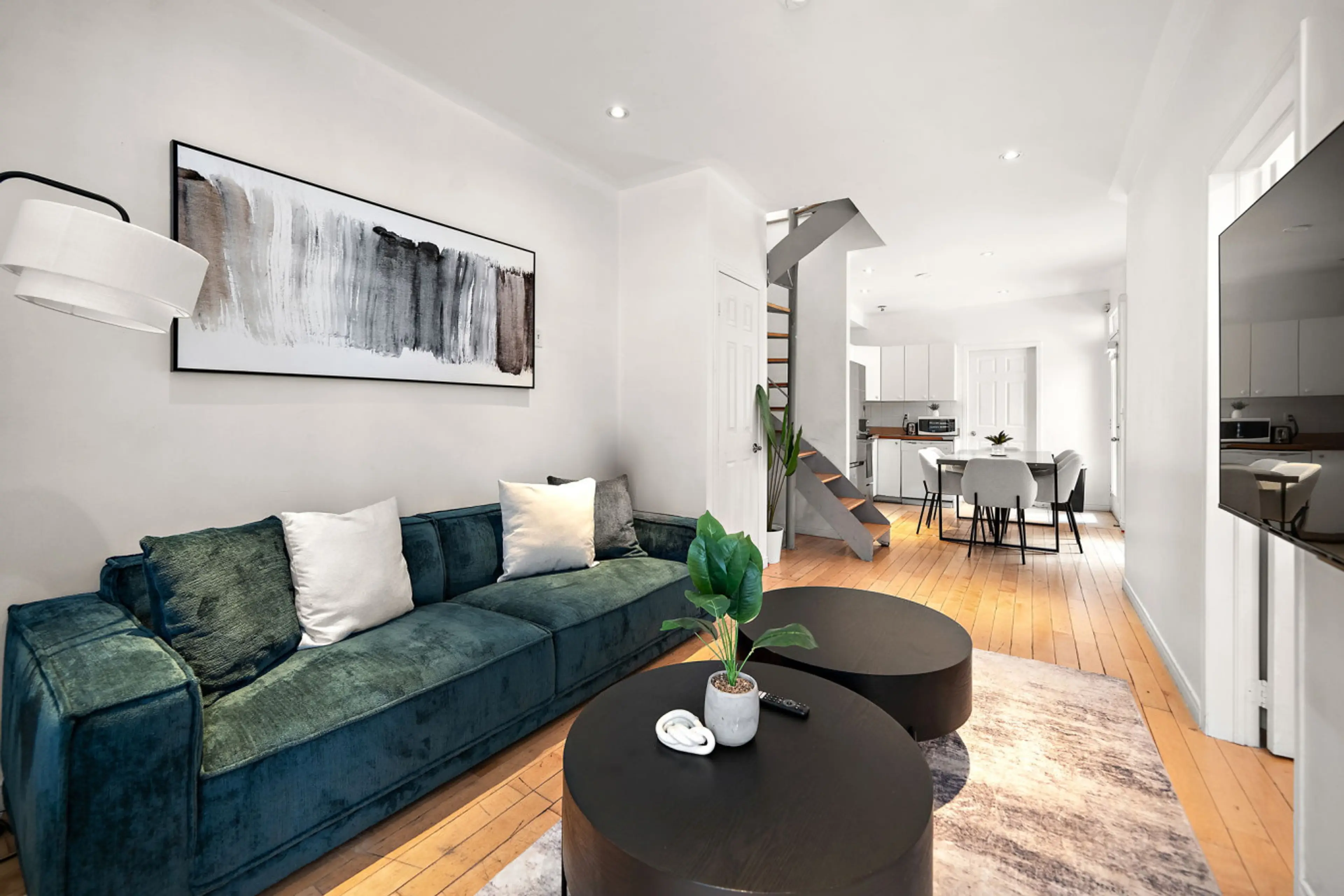 Welcome to your downtown Montreal sanctuary. Our 5-bedroom apartment boasts contemporary comforts: WiFi for the connected traveler, a kitchen ready for your culinary exploits, and a TV for those cozy nights in. Discover city highlights just a stroll away. You'll have a great time at this comfortabl...