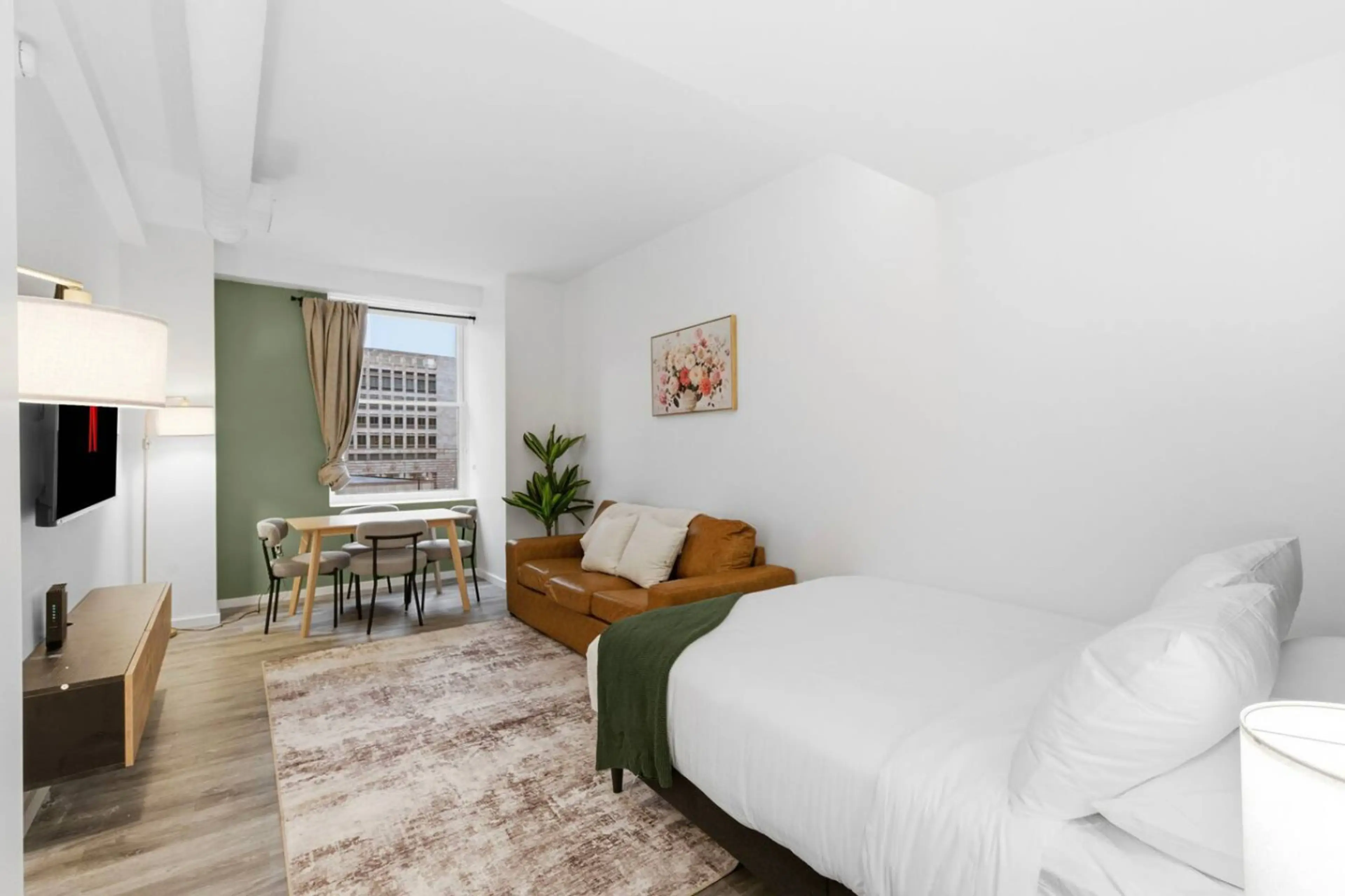 Enjoy a comfortable stay in this modern studio located in the heart of downtown Cleveland. Thoughtfully designed to maximize space and convenience, this unit offers a bright, open layout with everything you need for a relaxing stay. The unit features a comfortable sleeping area, a cozy space to rela...