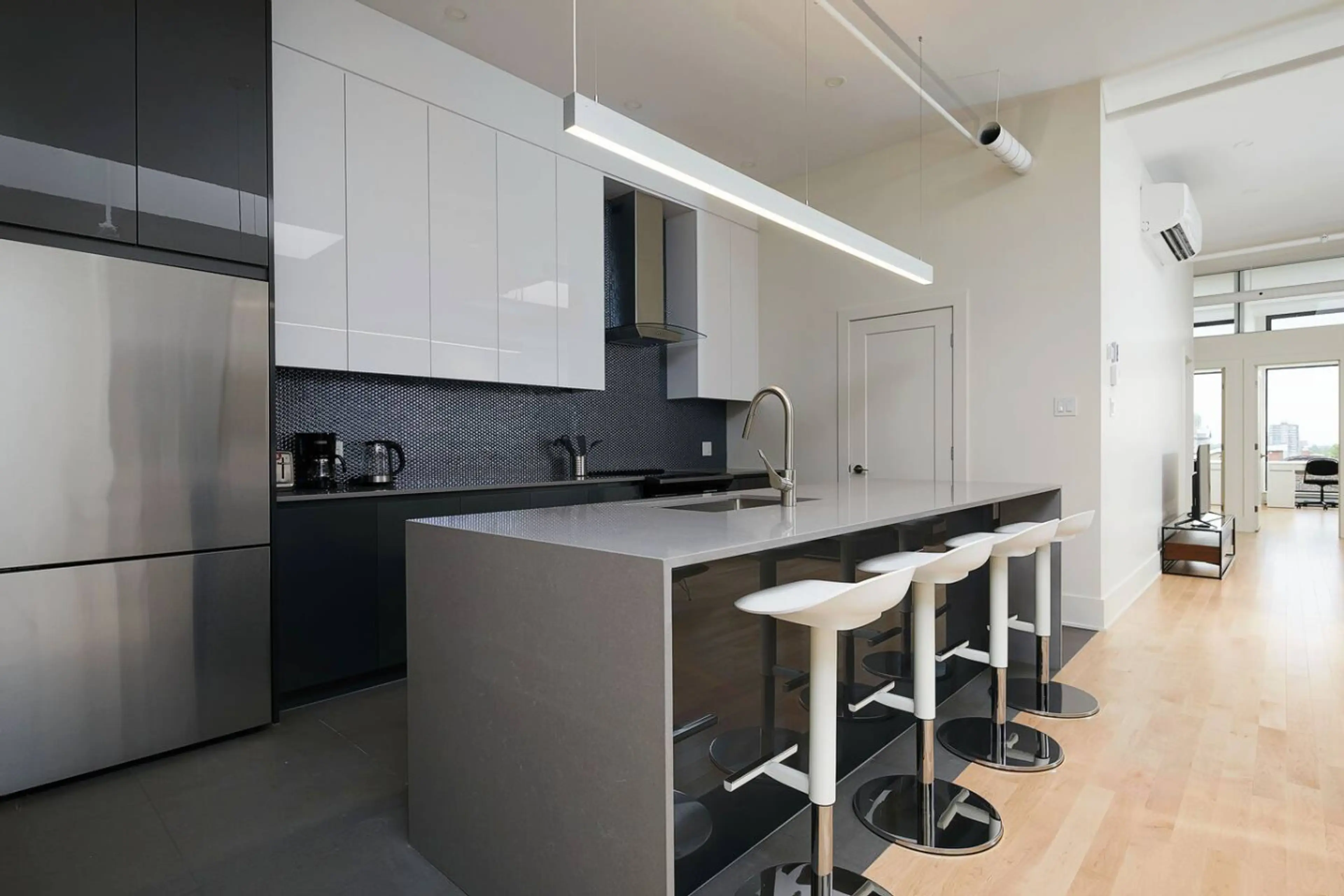 Unbelievable and unique loft space in the heart of Montreal. Completely redone 5 bedroom loft, huge skylights and high ceilings. Large bedrooms with views of Mont-Royal, and a great living space. Incredibly central location. Split unit AC in living/kitchen area. Fans in all bedrooms. In extreme hea...